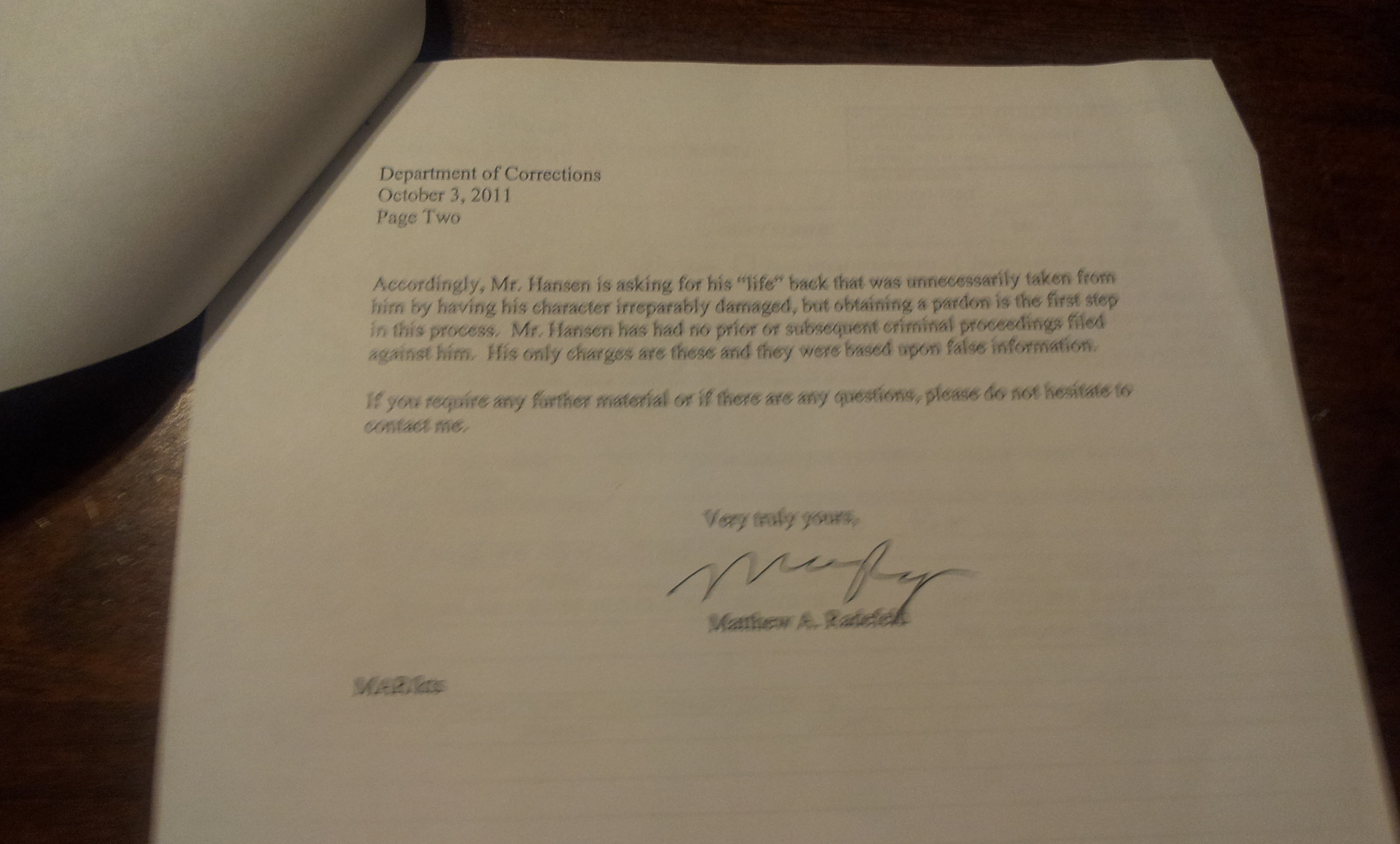 I’ve been fighting for my life for the last 32 years. Every attorney that I ever went to, told me I would have a hard time fighting this, since I did not go to jail. If I had gone to jail, I could have possibly got out on habeas corpus. The attorneys said that they would take my $15,000.00 and take a shot in the dark. Well, I didn’t have that kind of money until I met my wonderful wife Sandy, and we started our own business and put money away just for this. We got an attorney to start working on it. He got the next best thing… video statements from all 3 of my nephews in 2007, telling the true facts of how none of this ever happened and Don Manhal told them what to say. Yes, I have 3 videos of their statements, under oath, telling everyone that will listen that their uncle, Curtis Scott Hansen, didn’t molest them or anybody else, for that matter. I filed for a pardon in 2011. I have overwhelming evidence that this never happened, in the past or present. I have had a clean record for 32 years. I hope I’m not missing anything, but please call or write to Governor Parsons to have him give me back what’s left of my life. Thank you for reading my story. Below are some of the documents. Look at them and tell anybody that you can to help me in this matter.